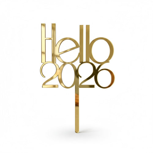 "Hello 2026" New Year Acrylic Topper (Gold Mirror)