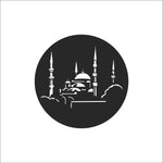 لوحة جدارية دائرية من الأكريليك الأسود (40×40 سم) - صورة ظلية لمسجد إسلامي