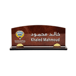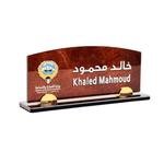 A professional, customizable desk name plate made from premium acrylic. Print your name, job title, department, and logo in Arabic, English, or both. The base uses a rubber-type material for a strong grip, so the plate stays in place and does not slide.